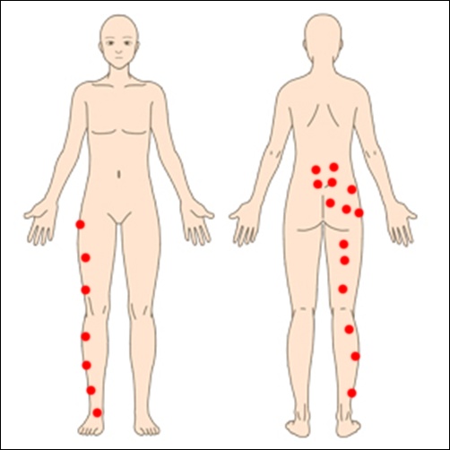 赤マークは問診時に痛みを感じていた部分